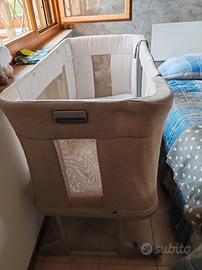 Vendo culla next to me forever della chicco color sabbia. Già lavata, smontata e messa nella scatola originale. In ottimo stato, eccetto per un piccolo difetto di cucitura.