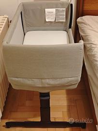 Culla da affiancamento modello "roomie go" in perfetto stato.altezza e inclinazione lettino regolabile,antirigurgito.completa del suo materasso antisoffoco,cinghie per ancora al letto e borsa per il trasporto.con poche mosse la si può chiudere e trasportare.comodissima