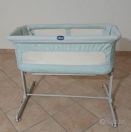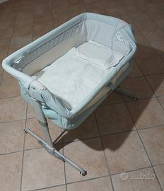 Materassino, cuscino anti-soffocamento, piumone e federe originali comprese. Sacco per trasporto incluso.