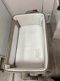 Vendo culla next to me per neonato (da agganciare al letto), utilizzata pochissimo e in condizioni eccellenti (praticamente come nuova). Nel suo imballaggio originale completo, inclusi materasso interno originale e tutti gli accessori.