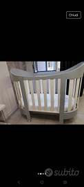 Culla ovale bicolore ( bianca e grigia) della baby Italia Made in Italy. Poco usata compresa di materasso nuovo .
