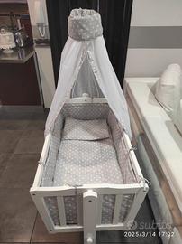 Star Ibaby Lettino con baldacchino – Culla a dondolo con baldacchino Star Ibaby Dreams; include: trapunta + cuscino + protezione completa, materasso per culla + baldacchino, colore grigio, unisex
