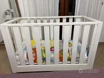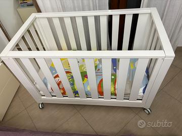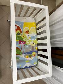 Culla lettino Cotinfant Look at me dotata di materasso, cuscino, cuscino separatore. Sponda laterale estraibile senza la necessità di attrezzi