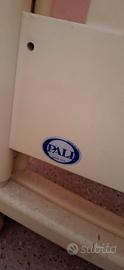 la culla è smontata dall'ultimo trasloco della casa al mare.usata pochissimo, leggeri segni,completa di materassino e minuteria, cassettone per le lenzuola. Montata è simile a quella nella foto, solo che il colore è giallino