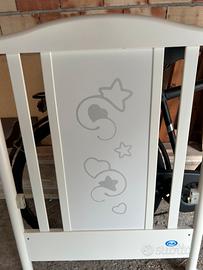 Vendo culla pali come da foto tenuta benissimo, nuova, montata e pii smontata per inutilizzo…..completa di meaterasso in aloe vera e carillon chicco con api sempre nuovo.