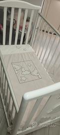 culla pali con cassetto completa di tutto, materasso, copriletto e paracolpi, ( il paracolpi presenta qualche difetto, dovuto ai lavaggi)