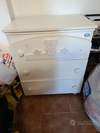 Culla Pali+fasciatoio Pali vendo per cambio cameretta con letto normale. La culla è tenuta bene un quanto al fasciatoio lo sto regalando perché manca un pomello ad un cassetto e manca la parte morbida in superficie perché era rovinata quindi sarebbe d'acquistare a parte ( io l'ho già acquistata in passato su Amazon perché purtroppo si rovinano quelle cose e mi sono trovata benissimo)