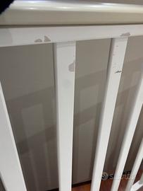 Vendo culla pali con cassetto sottostante e barra laterale regolabile. Ruote con possibilità di blocco. Uniche imperfezioni sono quelle che si vedono in foto dovute al gioco messo sulla culla. Regalo materasso ortipedico e coordinato con paracolpi e copertina.