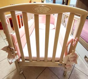 Vendo per inutilizzo culla Pali come nuova, come vedete dalla foto, insieme a materasso e paracolpi pezzo poco trattabile perché è in condizioni ottime la culla è smontata e riposta nel scatolo originale