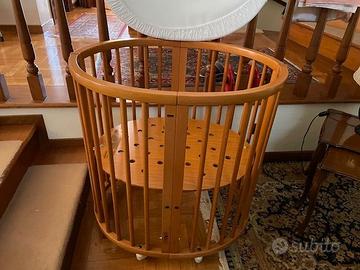 CULLA STOKKE VENDO LETTINO PER NEONATI TUTTO IN LEGNO MASSELLO MUNITO DI ROTELLE AUTOBLOCCANTI, COMPRENSIVO DI MATERAZZO, MOLTO BELLO CURATO NEI MINIMI PARTICOLARI ARROTONDATO.