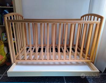 Vendo culla per bambini della Pali. Vendo senza materasso. Sponde mobili in legno di faggio massello (per una migliore stabilità si consiglia di fissare una delle due sponde) Rete a doghe in legno di faggio Rete regolabile a due posizioni: la posizione superiore consente un più agevole accesso alla madre nei primi mesi di vita del bambino Spigoli arrotondati e vernici atossiche Guaina protettiva anti-morso in materiale trasparente e atossico Misure: 133 cm x 72.01 cm x 103 cm