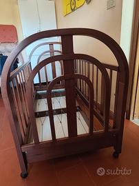 Vendo culla per bambini, in legno color marrone e reti in acciaio.