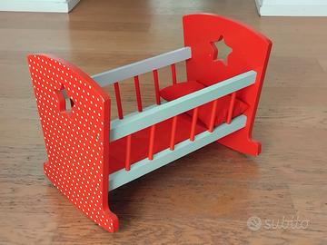Culla per Bambole in Legno Massello – Solida – Made in Spagna – Colore Rosso.