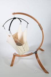 Il supporto Okoa è realizzato in legno di faggio. Include amaca per neonati biologica e supporto Okoa. un'alternativa naturale alla culla o al lettino. Con il loro naturale movimento di oscillazione e dondolio, le amache Hushamok inducono il sonno nei neonati e li mantengono addormentati più a lungo. In perfette condizioni.