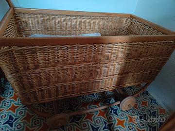 Culla per neonato in vimini, anni '60, dimensioni 100x55x75 cm.