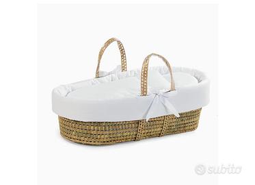 A malincuore vendo la culla in vimini firmata Picci con supporto in legno e paracolpi in tessuto bianco, materasso idoneo al neonato e in più regalo corredino per la culla