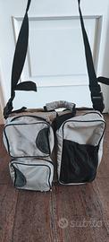 Borsa con tasche, si trasforma in una culla. in dotazione anche il lenzuolo o di sotto. Utilizzata, ben funzionante, ottima per chi viaggia col proprio bebè. le tasche della borsa sono accessibili anche quando la borsa è aperta in modalità culla. molto comoda. Dimensioni 76x34.