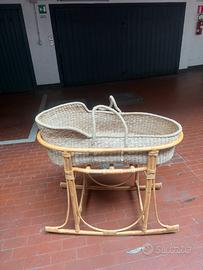 Culla in rattan marchio Zara Home. Composta di una cesta in vimini e struttura in bamboo.