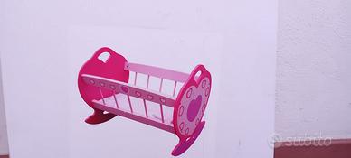 Culla rosa in legno per bambole Nuova ancora nel suo imballo
