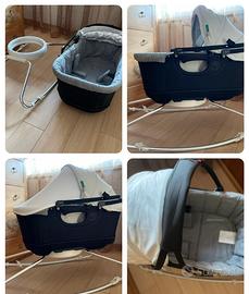 Bellissima, elegante e comoda culla che si trasforma in sdraietta quando il bambino cresce, consentendone un utilizzo nel lungo periodo. Sia la culla sia la seduta per il bambino più grande possono essere staccati con un semplice gesto dalla base a dondolo. La base a dondolo può essere utilizzata sia per cullare il bambino, sia "bloccata". Entrambi i pezzi sono provvisti di copertura anti uv, questo permette di utilizzare culla e seduta anche all'aperto, consentendo al bambino di riposare ad esempio in giardino senza essere disturbato dalla luce del sole. La seduta "sdraietta" si può rotare sulla base a dondolo e inclinare in tre diverse posizioni: questo permette al bambino più grande di essere in posizione più comoda se dorme, e in posizione più "alzata" se invece è sveglio in fase attiva di gioco e interazione. La seduta inoltre è dotata di maniglia e a cui poter appendere i giochi. Culla e sdraietta sono dotate di cinghie di sicurezza. Disponibile a fornire maggiori info a voce! Vera occasione, si tratta di una soluzione molto comoda e bella sia per il bambino, sia per chi si occupa di lui!