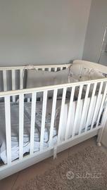 culla completa di materasso,cuscino paracolpi ,piumino e copripiumino. Cassetto sotto.