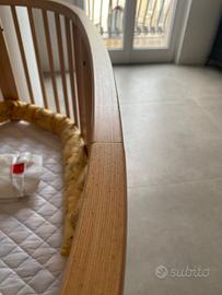 Culla/Lettino evolutivo Stokke Sleepi in Legno Naturale + Materasso e copri materasso (per versione grande) + braccio mobile in legno naturale + cuscino serpente il tutto mostrato in foto numero 3.