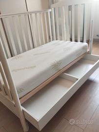 Vendo culla completa di materasso MAI USATA colore bianco dell azzurra design, cassetti contenitori, ruote con fermo . Al momento la spondina è stata smontata si può anche abbassare