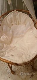 Culla Pali Sweeties Crema con struttura in vimini (completa di quattro ruote dotate di freno ) è completa da materasso e da un rivestimento in tela 100% cotone imbottito all'interno con morbida ovatta di poliestere, lavabile a 30°C senza centrifuga. Dimensione: 104 x 57 x 145h cm Peso: 8kg