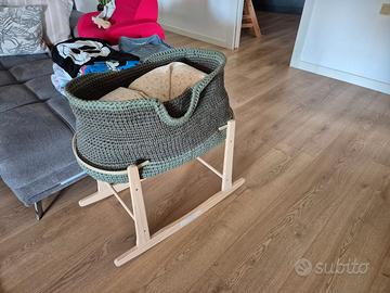 Vendo culla fatta a mano uncinetto con materasso antisoffocco e set lenzuola con anche supporto
