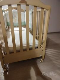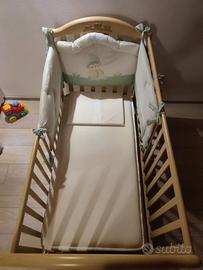 Culla per bambini con sponde che si possono abbassare, ruote per spostare in maniera più agevole cassetto sotto rete a doghe per porta abiti completa di materasso cuscino e paracolpi tenuta perfettamente usata pochissimo. Chi interessato disponibile per altre foto