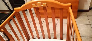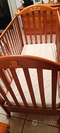 Vendo culla in legno, usata ma in ottime condizioni. Sponde laterali abbassabili, con ruote per facile spostamento e freno per tenerla ferma.