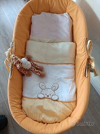vendo bellissima culla in vimini Pali con supporto,vendo così come in foto completa di tutto, materasso, cuscino e coperta. Usata pochissimo.