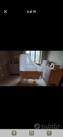 vendo culla per bambini, in ottimo stato, compresa di palo e zanzariera, materasso, piumino e imbottitura. tessuti cuciti su misura da mia madre. la culla misura 105 x 70, altezza con palo 160 cm.