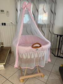 Vendo culla Waldin in vimini con ruote, capotta e accessori.