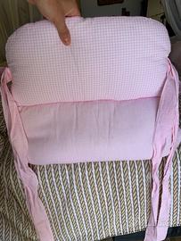 50x70cm. Una completamente rosa e l'altra rosa e quadretto rosa. In 100% cotone, morbida imbottitura laterale e materassino antisoffoco.