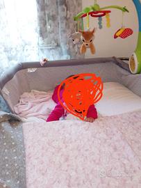 Culletta in legno della CAM con materasso e paracolpi più culletta piccola che si attacca al letto della next to me chicco