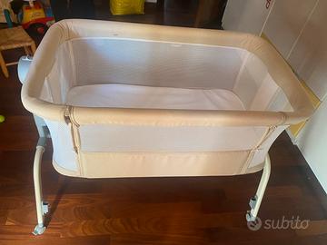 Culletta Next to me quasi nuova come si vede nelle immagini, è stata utilizzata solamente una settimana in vacanza. È davvero super comoda e praticissima, si monta e smonta in 2 minuti! clik clack ed è fatto. Regalo il materassino ergonomico della sua misura. Queste le caratteristiche da sito ufficiale Relax4life, prezzo nuova 149 euro: Colore beige Marchio RELAX4LIFE Dimensioni del prodotto 101L x 561 x 89H cm Assemblaggio necessario Sì Peso articolo 9 Chilogrammi Produttore RELAX4LIFE * Culla Convertibile 3 in 1* Questa culla finaco letto combina una culla classica, una culla a dondolo e lettino co-sleeping ed è stata progettata per i neonati 0-6 mesi. Il cestello portaoggetti sotto consente di riporre riporre pannolini, carte igieniche e biberon. •*Altezza Regolabile e Posizione Inclinata * L'altezza della culla è regolabile su 6 livelli (misura: 76,5-89cm) per adattarsi all'altezza del letto dei genitori. Inoltre, puoi impostare l'angolo della culla di 10° per evitare il reflusso. *Più Vicini ai Genitori* La parete laterale può essere facilmente arrotolata. I piedini retraibili permettono di affiancare meglio la culla al letto dei genitori. La cintura di fissaggio può fissare il lettino per proteggere il bambino dalla caduta a causa dello spostamento. *Stoffa Morbida e Traspirante * Attrezzato con il materasso spesso 2,2cm, consente un ottimo comfort per i neonati. La zanzariera protegge i bambini dalle punture migliorando la qualità del sonno. *Facile da Spostare * 4 Ruote piroettanti con freno rendono agevole lo spostamento. Questo lettino si ripiega facilmente e può essere riposto nella borsa da trasporto inclusa che è comoda per il trasporto. Ritiro a mano a Firenze