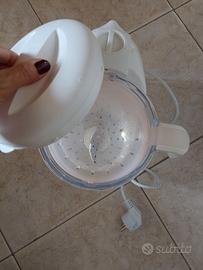 Vendo Chicco Easy metal 4 in 1, prepara pappa e omogeneizzati per bambini o persone anziane che non possono mangiare pezzi grandi. Di chiama 4 in 1 perché fa ben 4 cose: cuoce a vapore, omogeneizza il cibo, scongela e riscalda. Facile da usare, lo abbiamo usato per nostro figlio per un sei mesi circa. È in ottimo stato , potete vedere ancora l'imballaggio e la plastica bianca perfetta. Ovviamente funziona ancora benissimo.