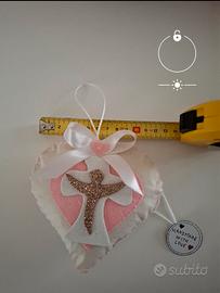 Cuore morbido in feltro. Hand made. Da regalare in occasione della Prima Comunione. Possibilità di averlo nche per maschietto. In questo caso, le parti in rosa saranno blu. Il cuore arriverà dentro una busta trasparente con fiocco.