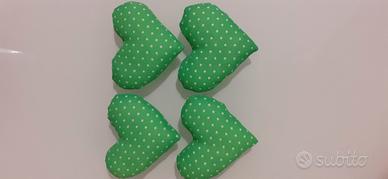 Cuori di stoffa verde a pois per decorazioni 4 pz