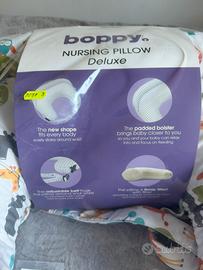 Cuscino per allattamento Boppy modello Deluxe. Come nuovo, l’ho solo provato un paio di volte ma poi ho optato per un diverso supporto. Pagato 49€.