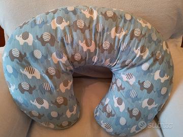 Cuscino allattamento boppy con cover azzurra e rosa. Ben tenuto