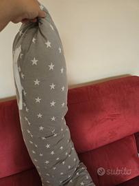 Cuscino da allattamento alto 1 metro e mezzo. Grigio chiaro con stelline bianche. Usato pochissimo. Lavabile in lavatrice. Ritiro entro 9 giu a Torino zona nizza millefonti