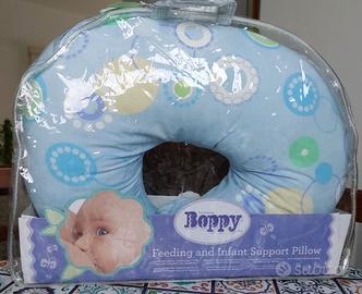 Cuscino allattamento Boppy fantasia sfondo celeste. Conservato nella confezione originale.