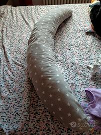 Niimo Cuscino Gravidanza e Allattamento per Dormire di lato. Federa Esterna 100% Cotone Sfoderabile e Lavabile Uso Versatile (Grigio Stelle Bianche).