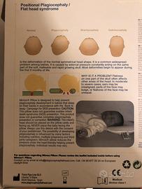 Un cuscino Mimos è progettato per proteggere la forma della testa del bambino distribuendo uniformemente la pressione durante la posizione supina. La sua struttura unica e brevettata in 3D traspirante riduce la pressione dannosa sulla parte posteriore della testa, aiutando a prevenire e correggere delicatamente e in sicurezza la sindrome della testa piatta.