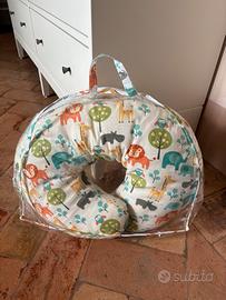 Cuscino allattamento multifunzione sia per allattamento naturale o con il biberon. Può essere utilizzato anche come cuscino a partire dai 6 mesi; dai 9 mesi aiuta il neonato a mantenersi in equilibrio e sedersi in sicurezza. Sia il cuscino che la federa rimovibile sono lavabile in lavatrice. Completo di custodia per trasportarlo.