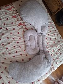 Cuscino total body boppy chicco 3 pezzi specifico per gravidanza, modulabile per essere usato su tutto il corpo, testa-addome o addome-gambe. Colore grigio, lavabile in lavatrice. Pari al nuovo, usato due volte, con sacca per riporlo. È stata tagliata l’etichetta