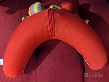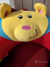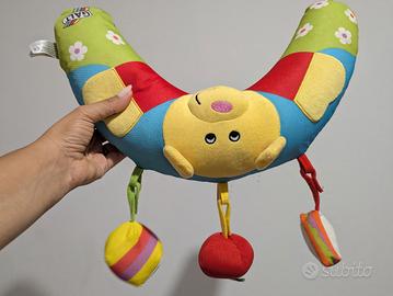 Il cuscino gonfiabile rivestito di tessuto e sorregge il bambino steso sul pancino mentre esplora i giochi del picnic: un sonaglio a forma di mela, una torta che fa squeak e un panino frusciante, tutti staccabili e utilizzabili anche separatamente