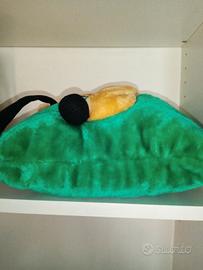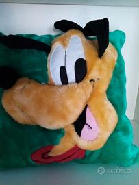 Cuscino verde in peluche con Pluto in rilievo. Pluto non è disegnato, ma è in rilievo, fatto di peluche liscio , come tutto il cuscino. Cm 30 x 30.